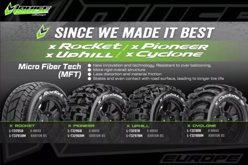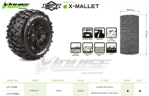Hoofdpagina › Auto's › Banden & Velgen › (LR-T3350B) Louise RC - MFT - X-MALLET - Tire Set for X-Maxx - Mounted - Sport - Black wheels - Hex 24mm