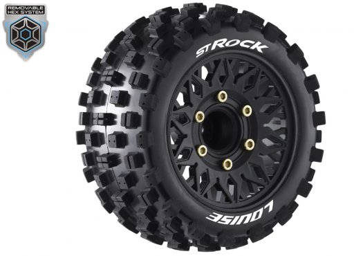 Louise RC - ST-ROCK - 1-10 Stadium Truck Tire Set - Mounted - Sport - Black Wheels - Removable HEX 12 Narrow, 12 Wide, 14, 17mm