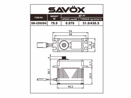 Hoofdpagina › Electronica › Servos › Savox servo › (SB-2292SG) SAVÖX Standard Size Digital Brushless Servo Aluminium Case 7,4V 31kg/0,07sek