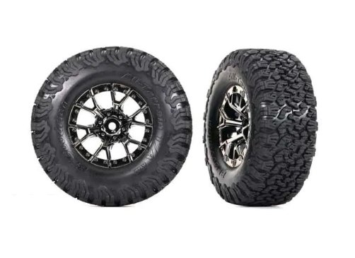 (TRX10187-BLKCR) Tires & wheels, assembled, glued (Ford Raptor R black chrome wheels, BFGoodrich All-Terrain T/A KO2 tires, foam inserts) (2) (4WD fro